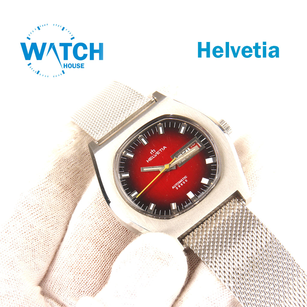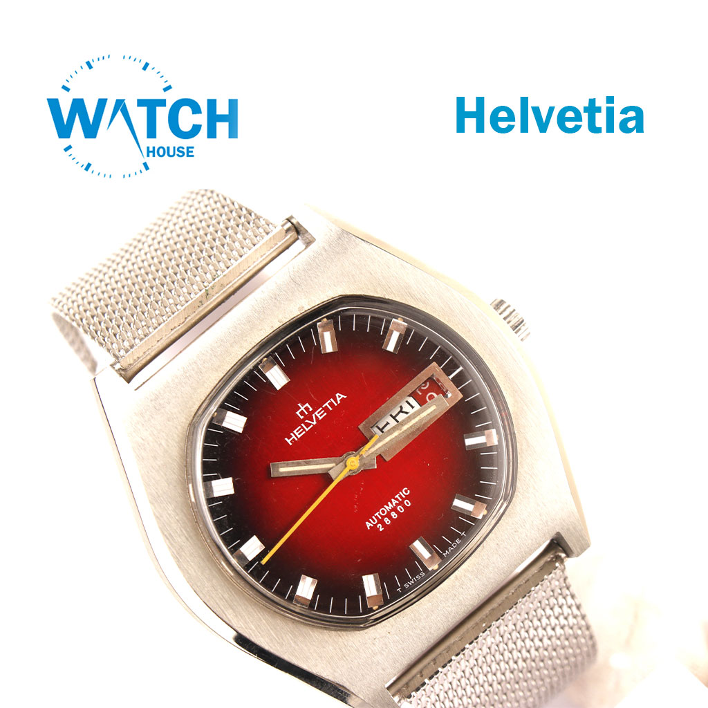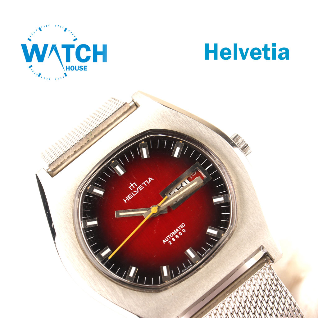 GENUINE Helvetia Automatic 28800 Watch Rare Swiss 60s Rare Red Dail, -NOS-