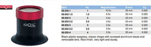 EYEGLASS IN BLACK PLASTIC WITH SCREWED ALUMINIUM RING, No. 1 = 10.0x / LENS Ø 25 mm