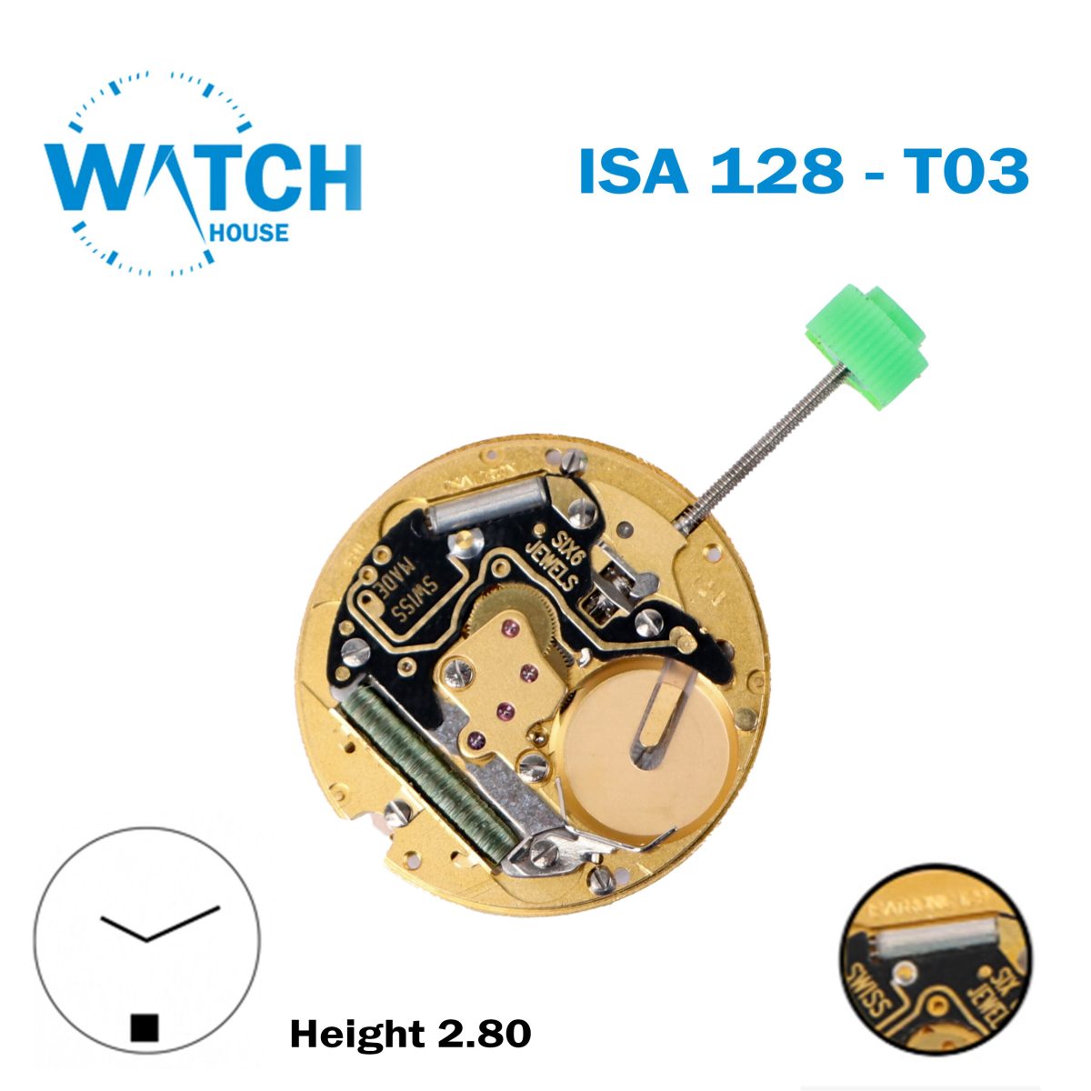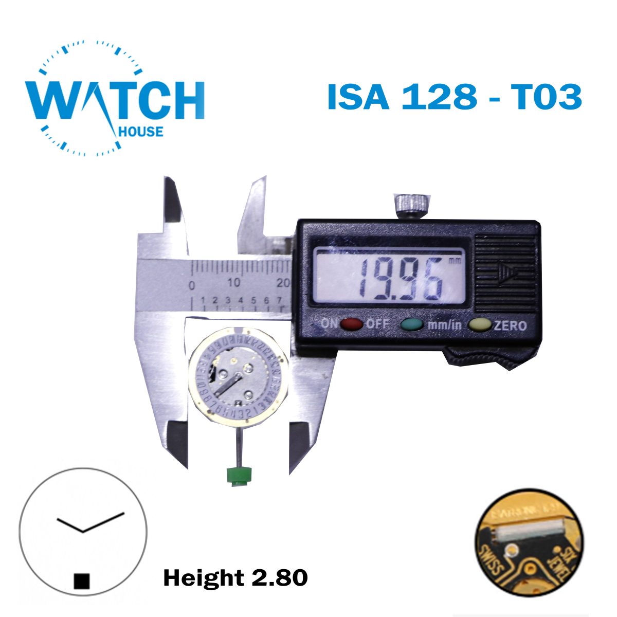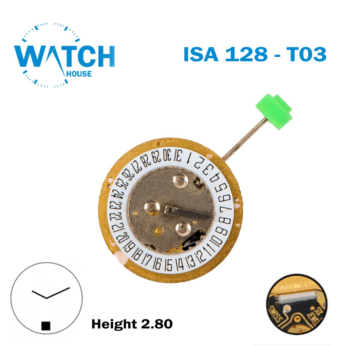ISA 128-T03 Swiss Made Quartz Movement, White Date Disk At 6, 2 Hands.