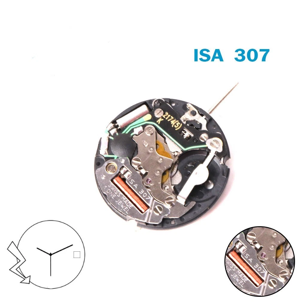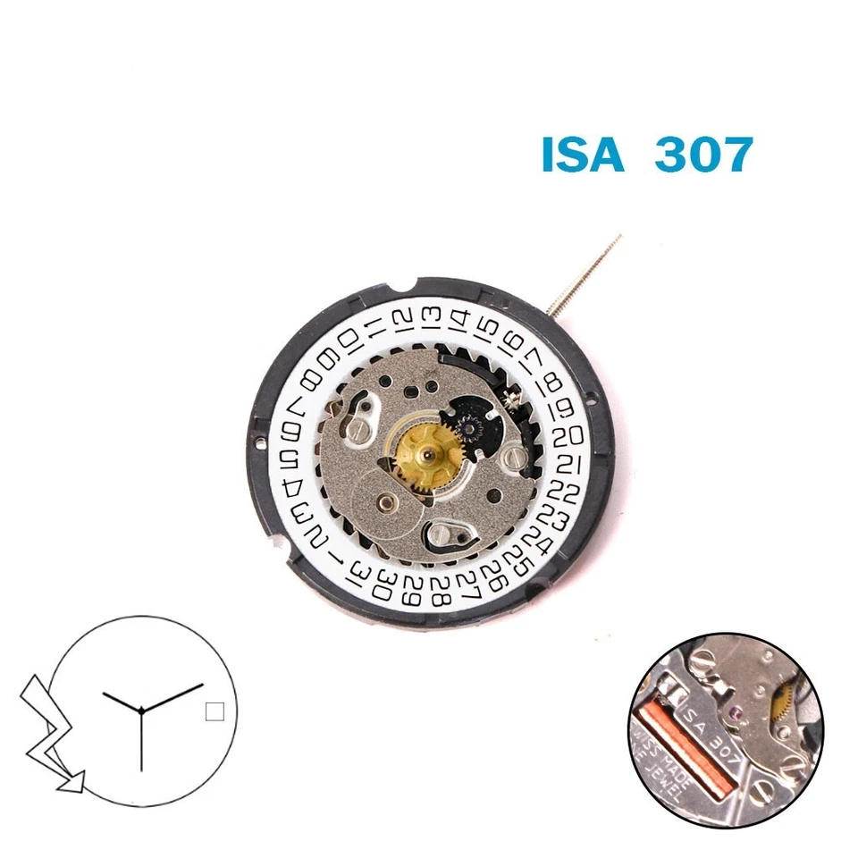 ISA 307 Swiss Made Watch Movement, White Date Disk at 3, 3Hands.