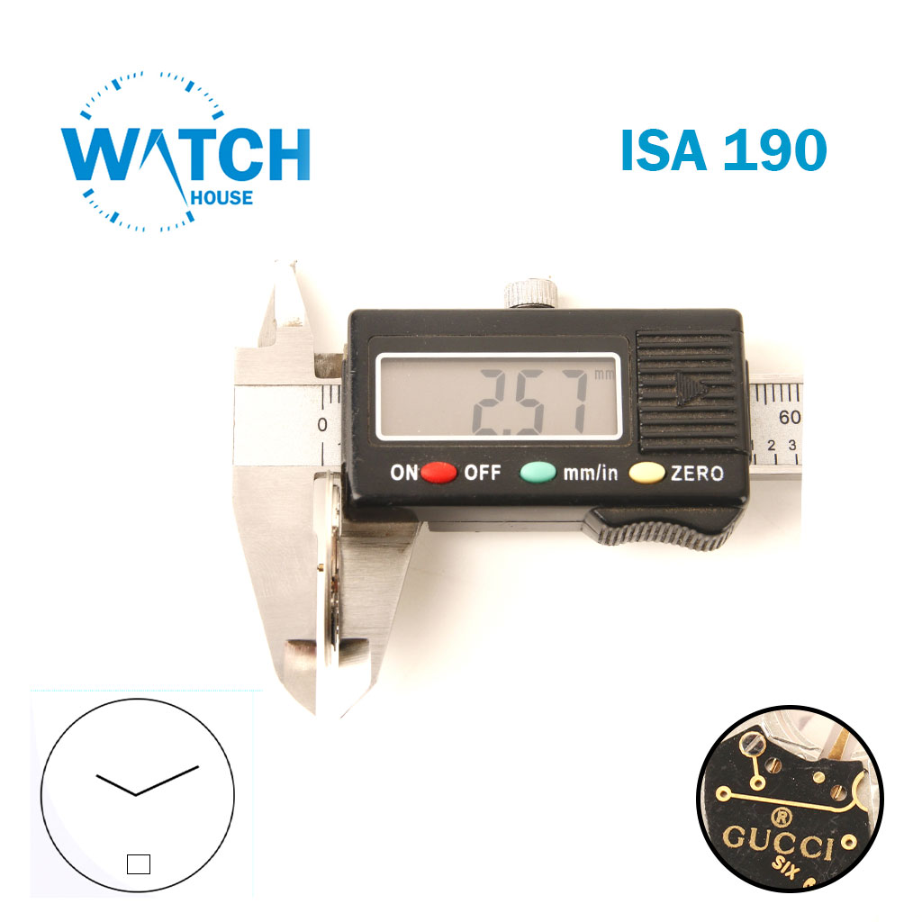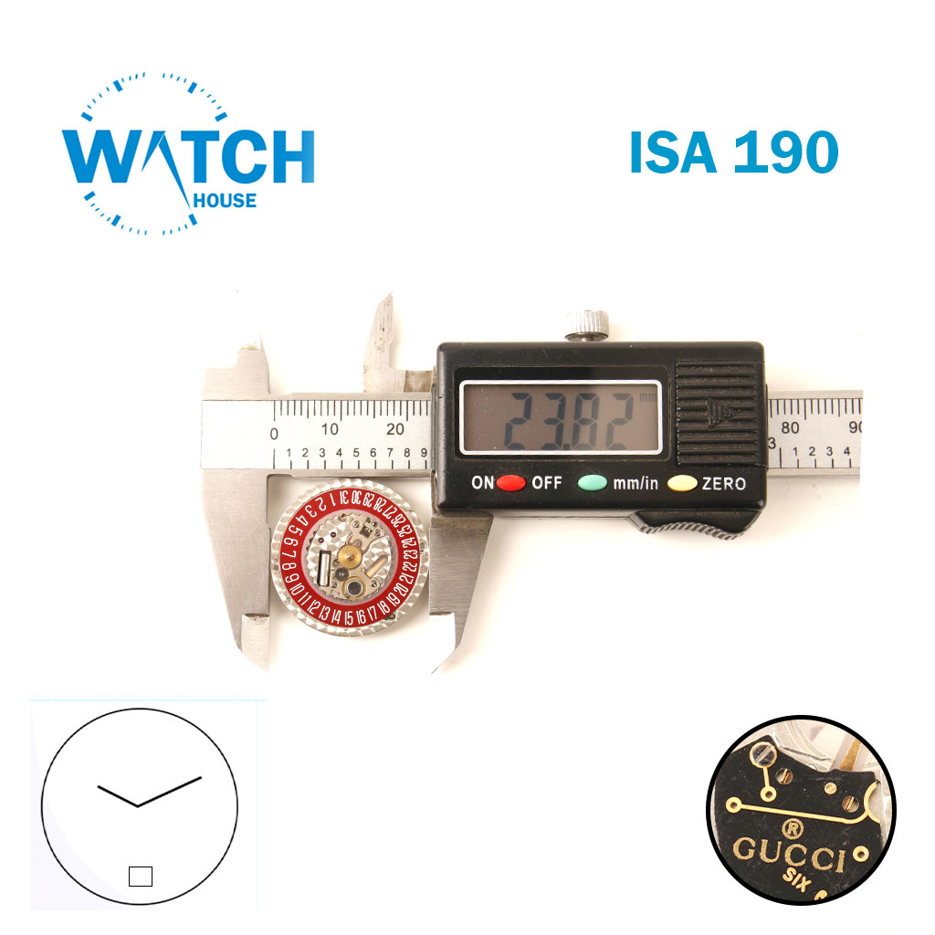 ISA GUCCI 190 Swiss Movement, 2 Hands, Dark Red Date Disk At 6, Silver Plated.