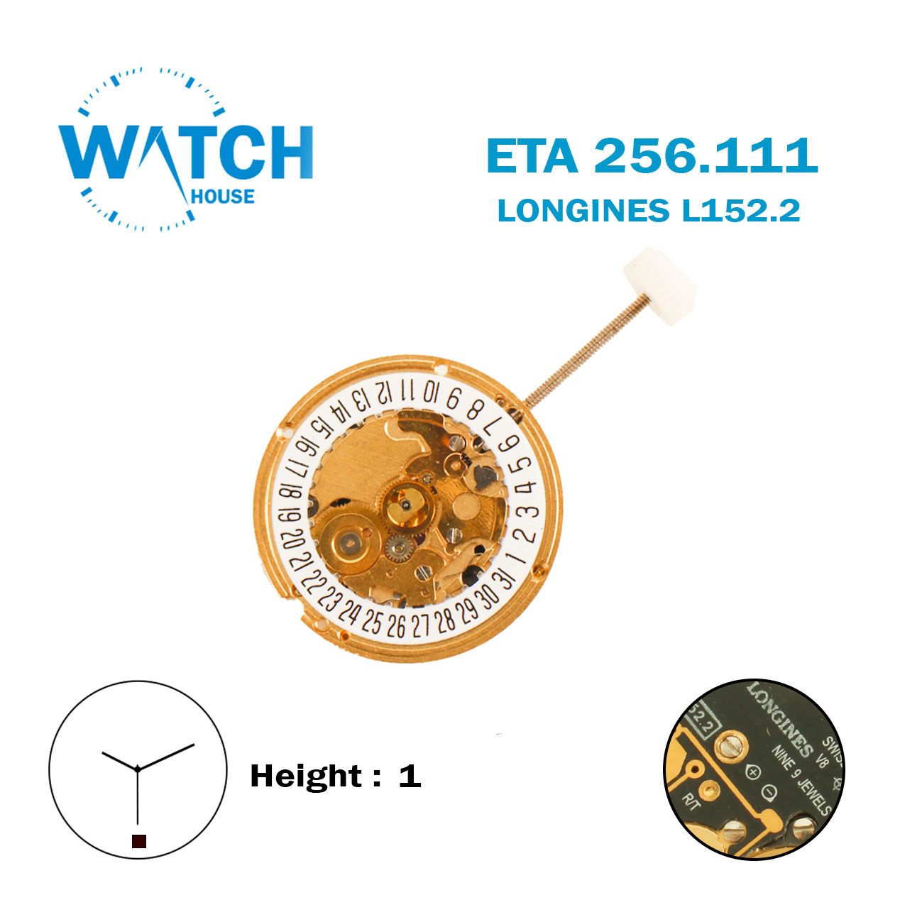 LONGINES (L152.2) ETA 256.111 Swiss Watch Movement, White Date Disk at 6, 3 Hands, Height 1.