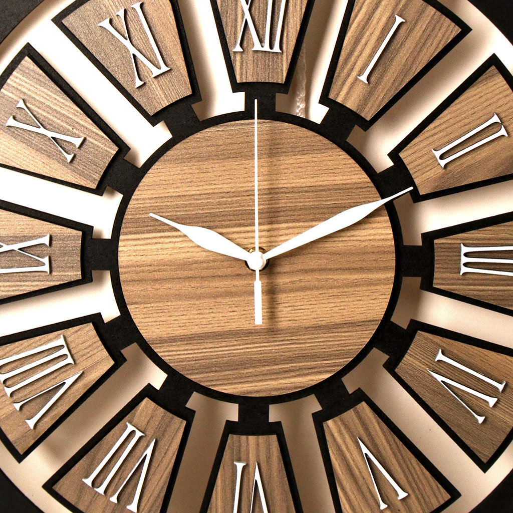 Modern Wooden Wall Clock – Dark Brown Rock-Style MDF Design with White Hands / Battery Quartz, Romani’s Number