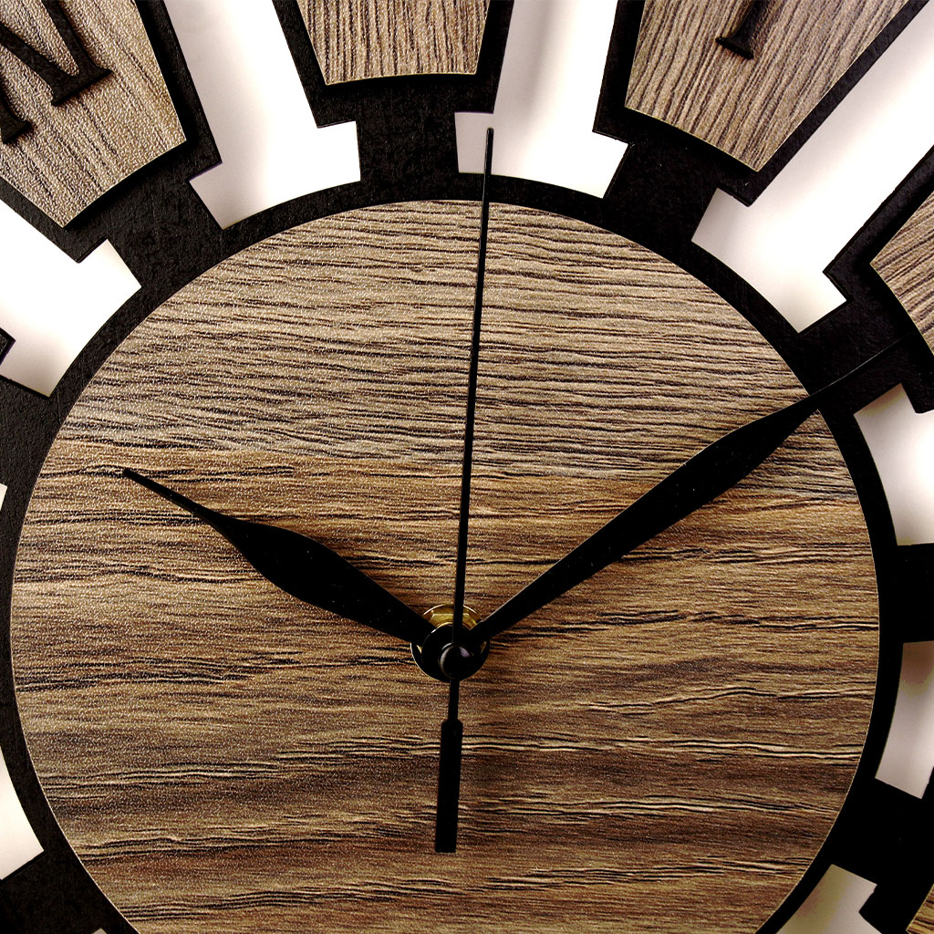 Modern Wooden Wall Clock – Black Rock-Style MDF Design with Black Hands/ Battery Quartz, Romani’s Number .