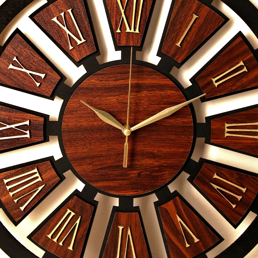 Be the first to review “Modern Wooden Wall Clock – Dark Brown Rock-Style MDF Design with Gold Hands/ Battery Quartz, Romani’s Number .” Cancel reply