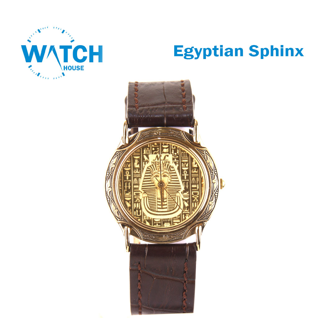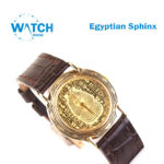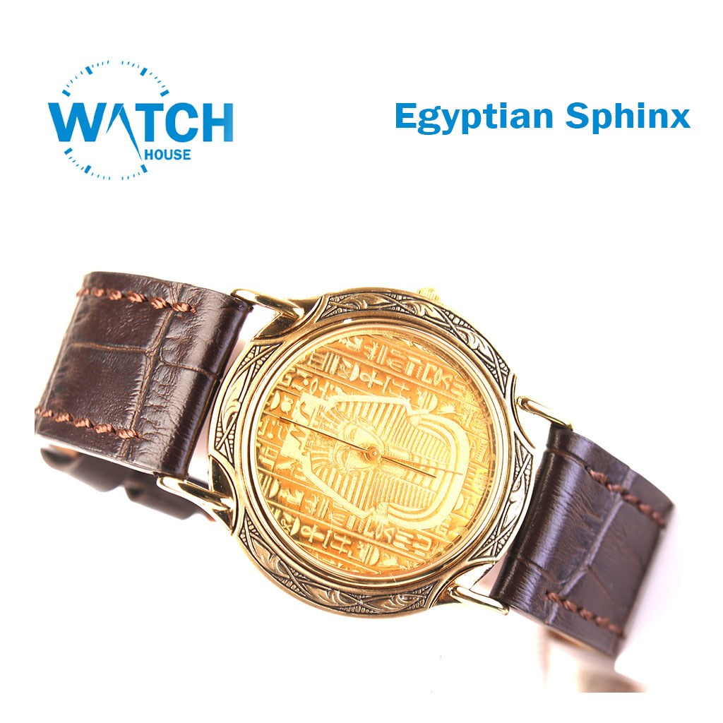 New Life Egyptian Sphinx Gold Plated Watch, Handmade 21K Gold Tone Dail | Swiss Movement | Leather Strap | Limited Edition.