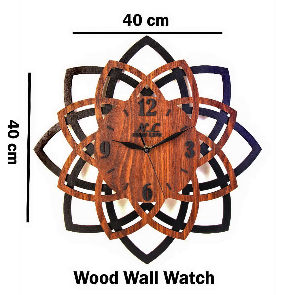 NEW LIFE Modern Wooden Wall Clock – Dark Brown Rock-Style MDF Design with Black Hands/ Battery Quartz.