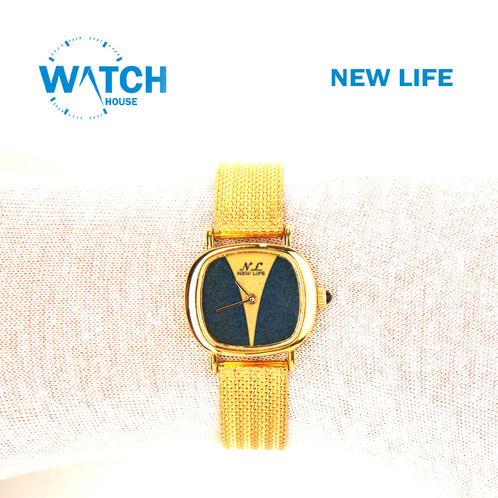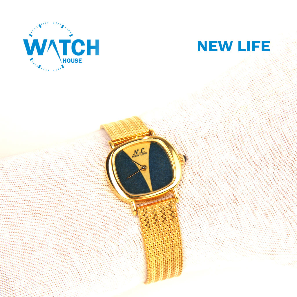 NEW LIFE Women’s Gold Plated Watch – Handmade Egyptian Brand, Blue & Gold Dial, 21K Gold Tone.