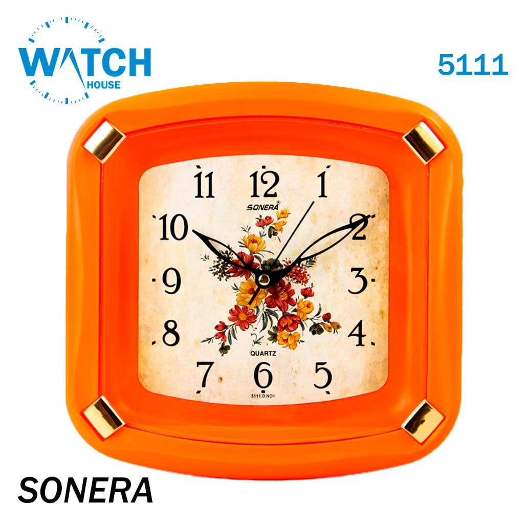 Sonera-5111 Wall Clock – Square Orange Color