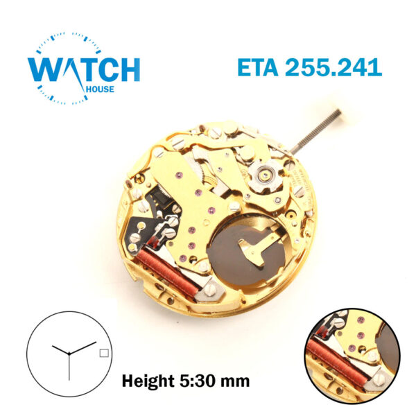 ETA 251.262 Swiss Made Quartz Movement, White Date Disk At 6, Chorograph.