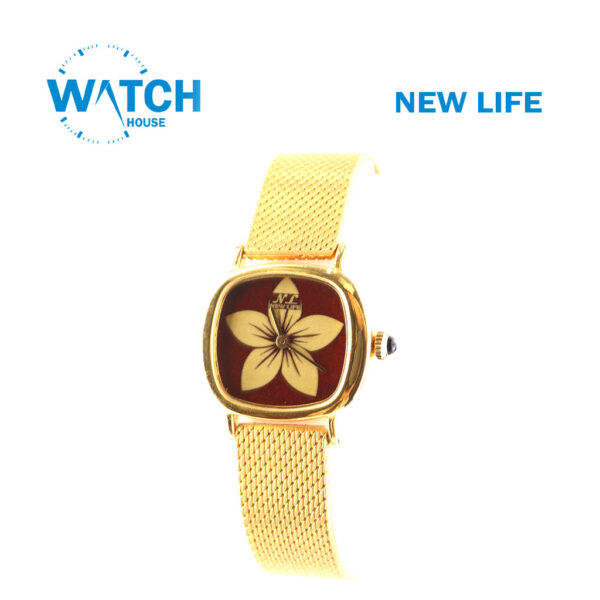 NEW LIFE Women’s Gold Plated Watch – Handmade Egyptian Brand, Flower Dark Red Dial, 21K Gold Tone.
